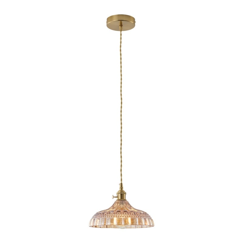 Modern 1-Light Amber Glass Pendant Light with Electroplated Brass Finish for Kitchen Island, Dining Room, and Foyer