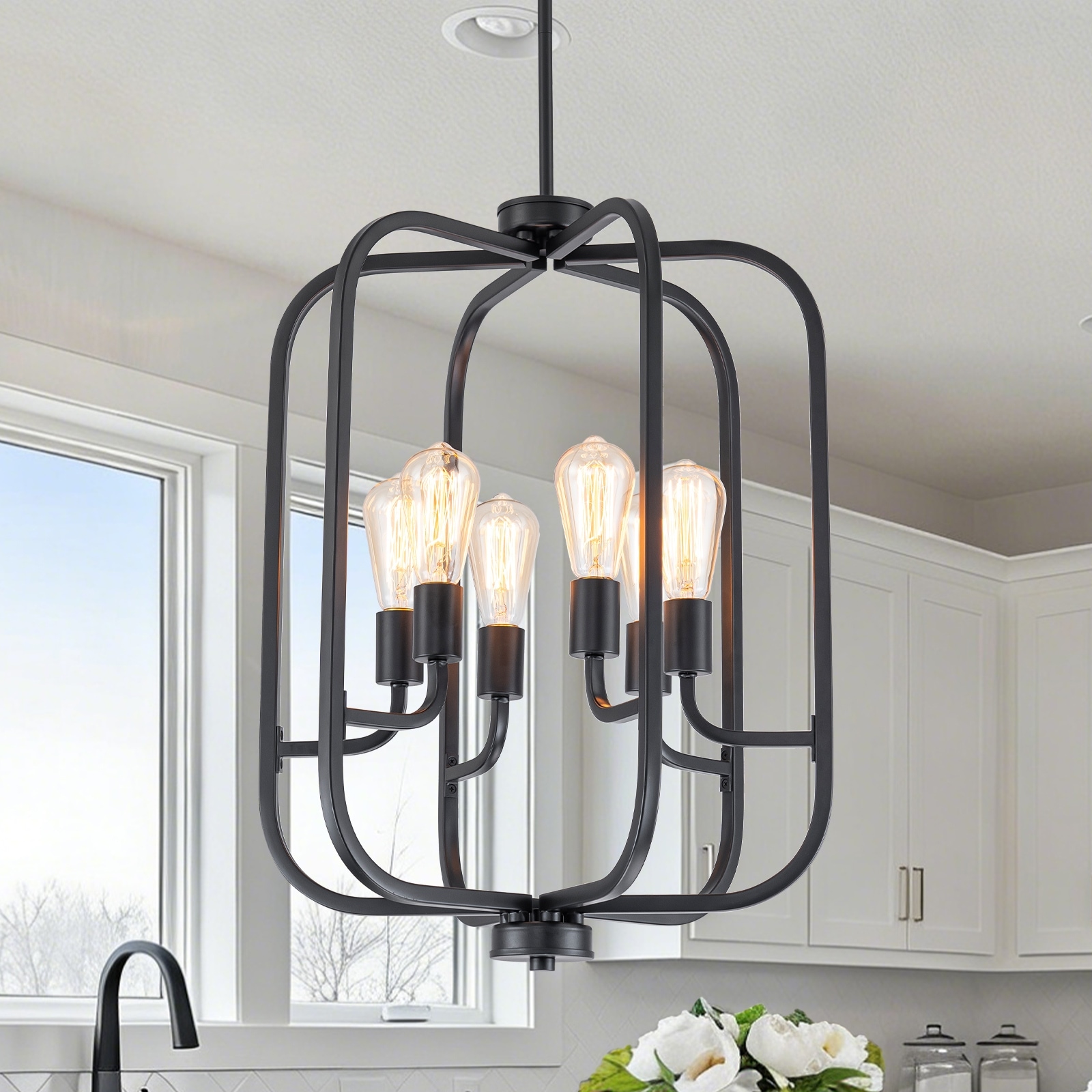 6-Light Industrial Birdcage Chandelier Black Metal Frame Farmhouse - Dia.18.31-in