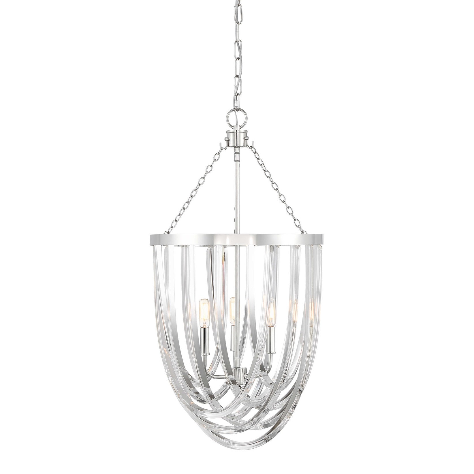 37" Modern Industrial 5-Light Chandelier with Clear Glass Shades, Metal Frame Hanging Ceiling Light Fixture (No Bulbs)