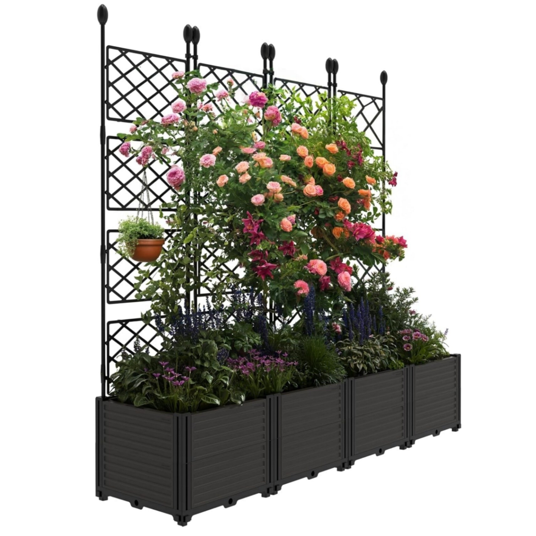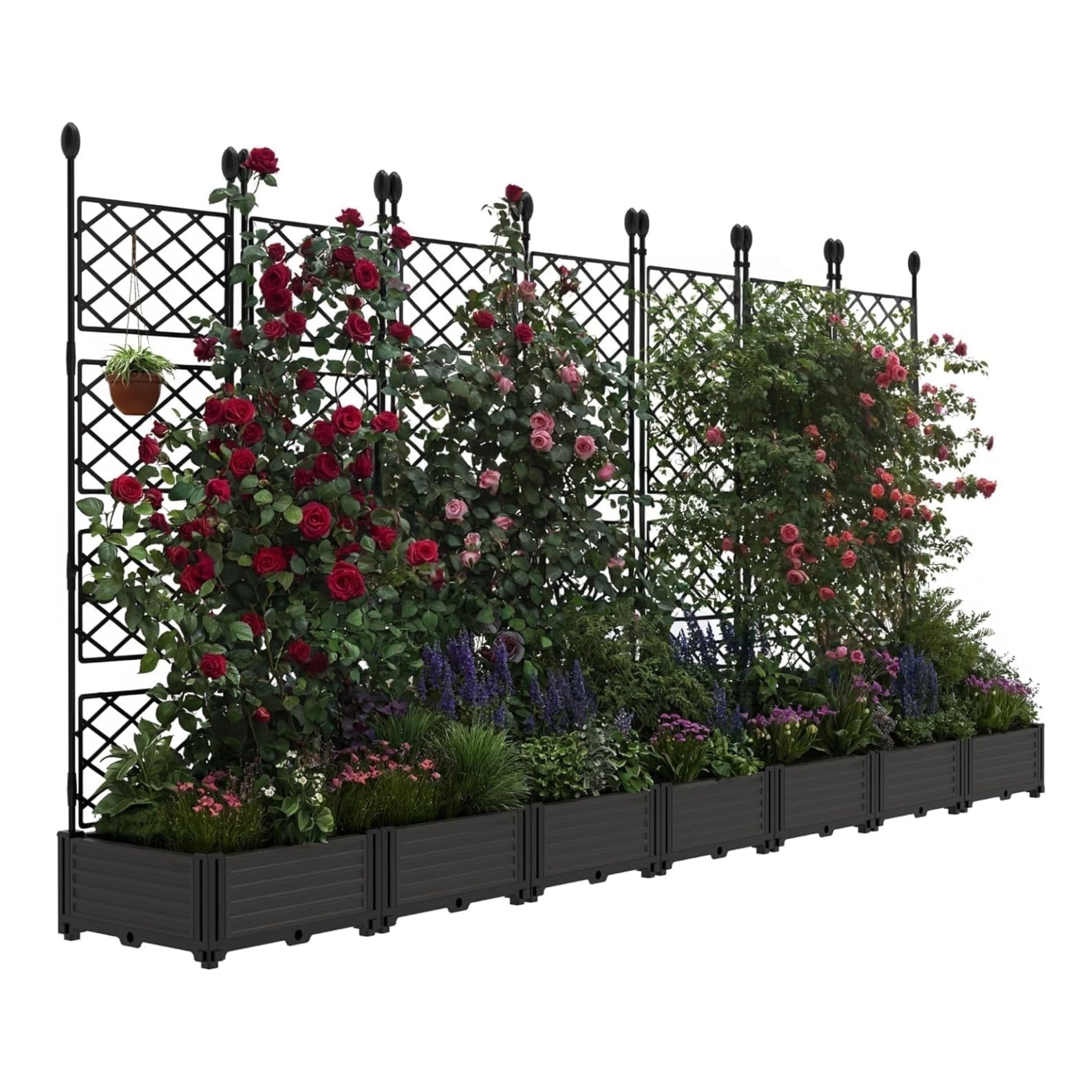 3/4/7 PCS Screen Trellis Planter Set, Raised Garden Bed with Flower Stand, Outdoor Planting Box for Climbing Plants
