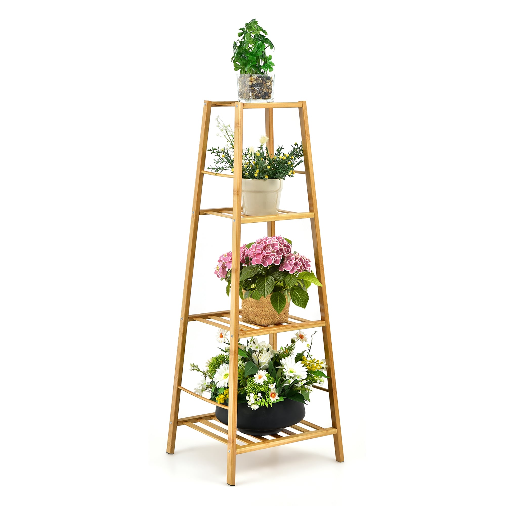 Costway Bamboo Tall Plant Stand Pot Holder Display Shelving Unit - 14.5'' x 13.5'' x 39''