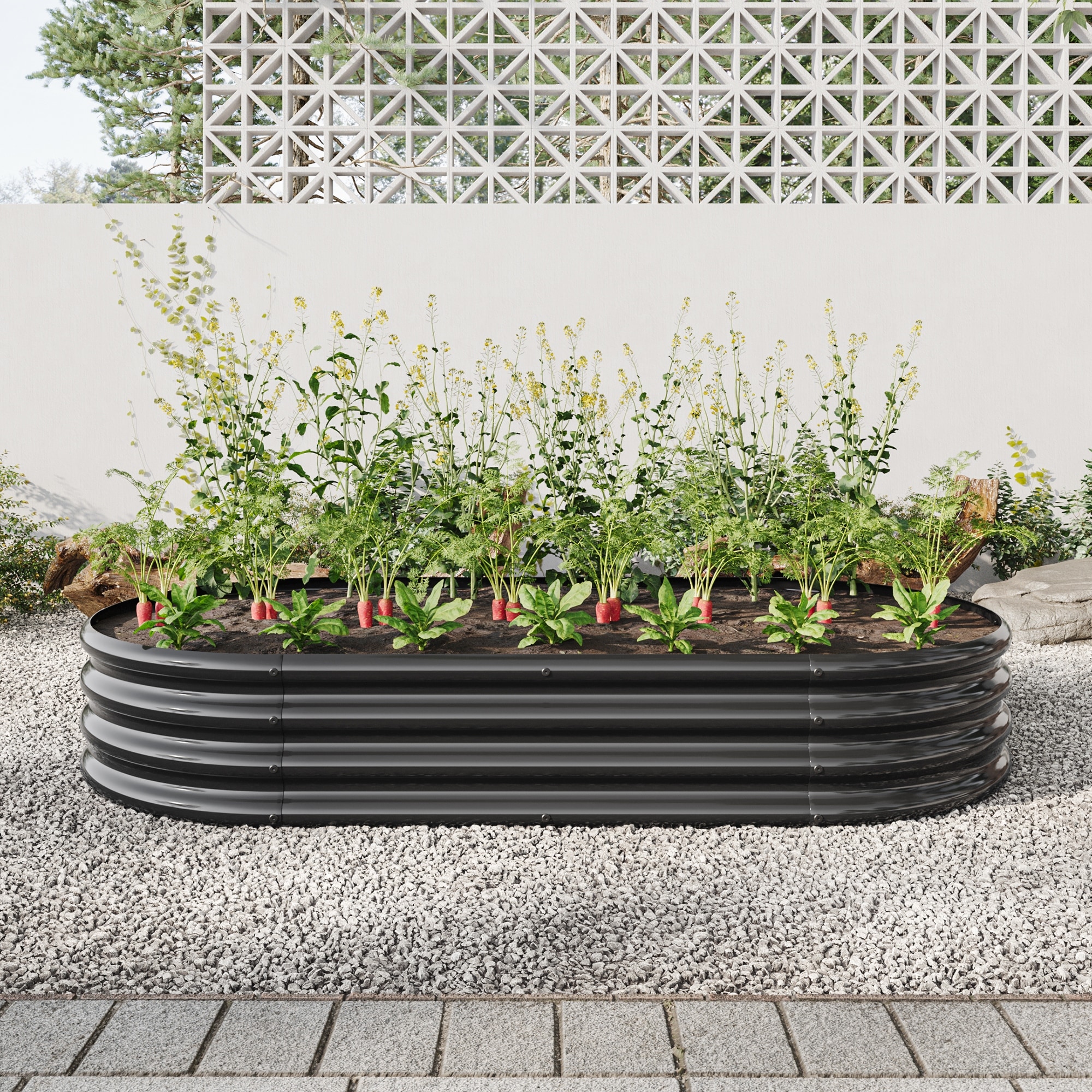 Corrugated Outdoor Raised Garden Bed with Open Base Backyard Planting