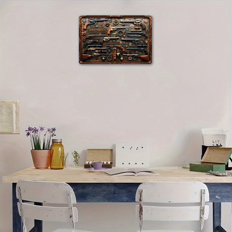 Rustic Aluminum Vintage Style Gun Themed Metal Wall Sign, Decorative Plaque For Bar, Garage, Home, Cafe Decor brown 20x30cm (7.87x11.8in)