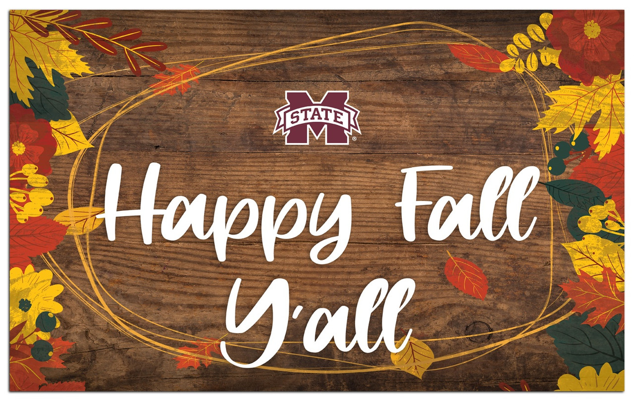 Mississippi State Bulldogs Happy Fall Y'all 11" x 19" Sign