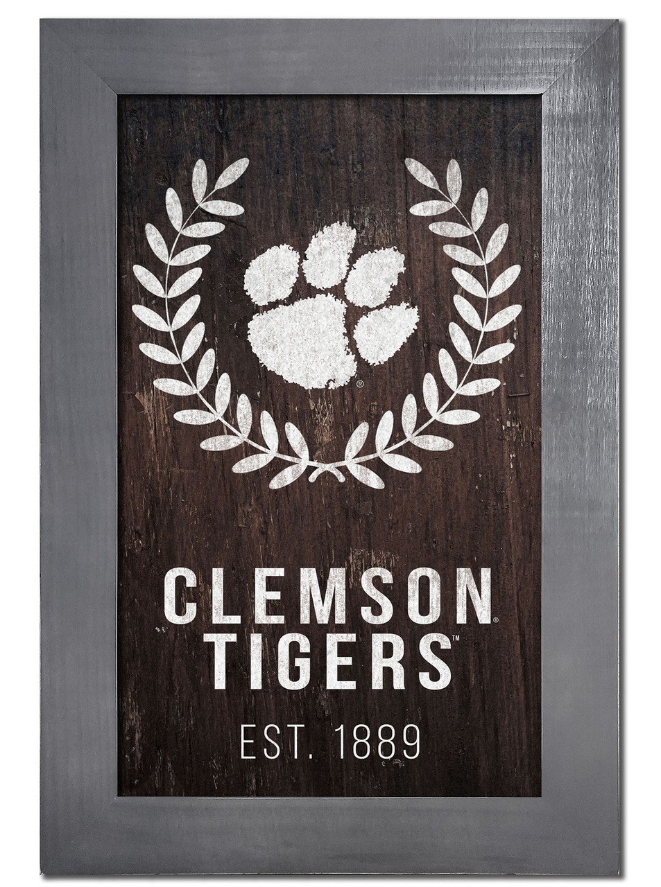 Clemson Tigers 11" x 19" Laurel Wreath Framed Sign