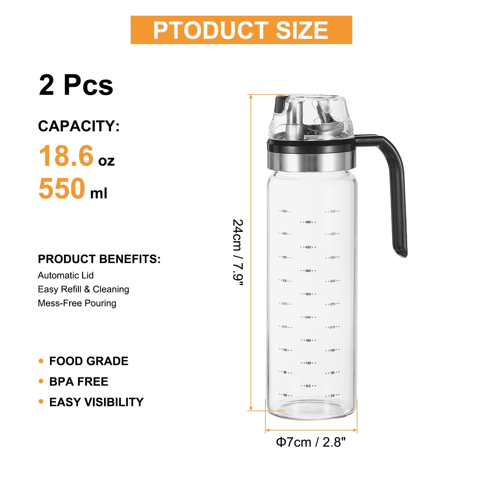 Glass Oil Bottle with No Drip Spout, Glass Oil Dispenser with Scale for Kitchen - Silver