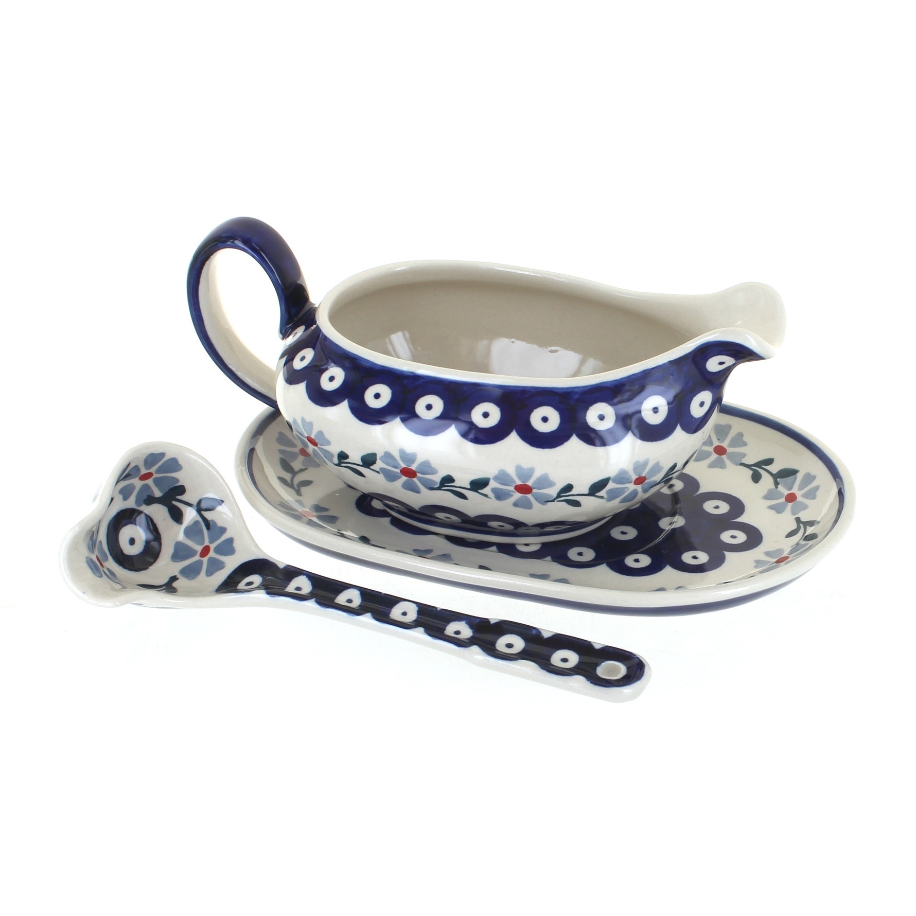 Blue Rose Polish Pottery S119 Manufaktura Gravy Boat Plate & Ladle