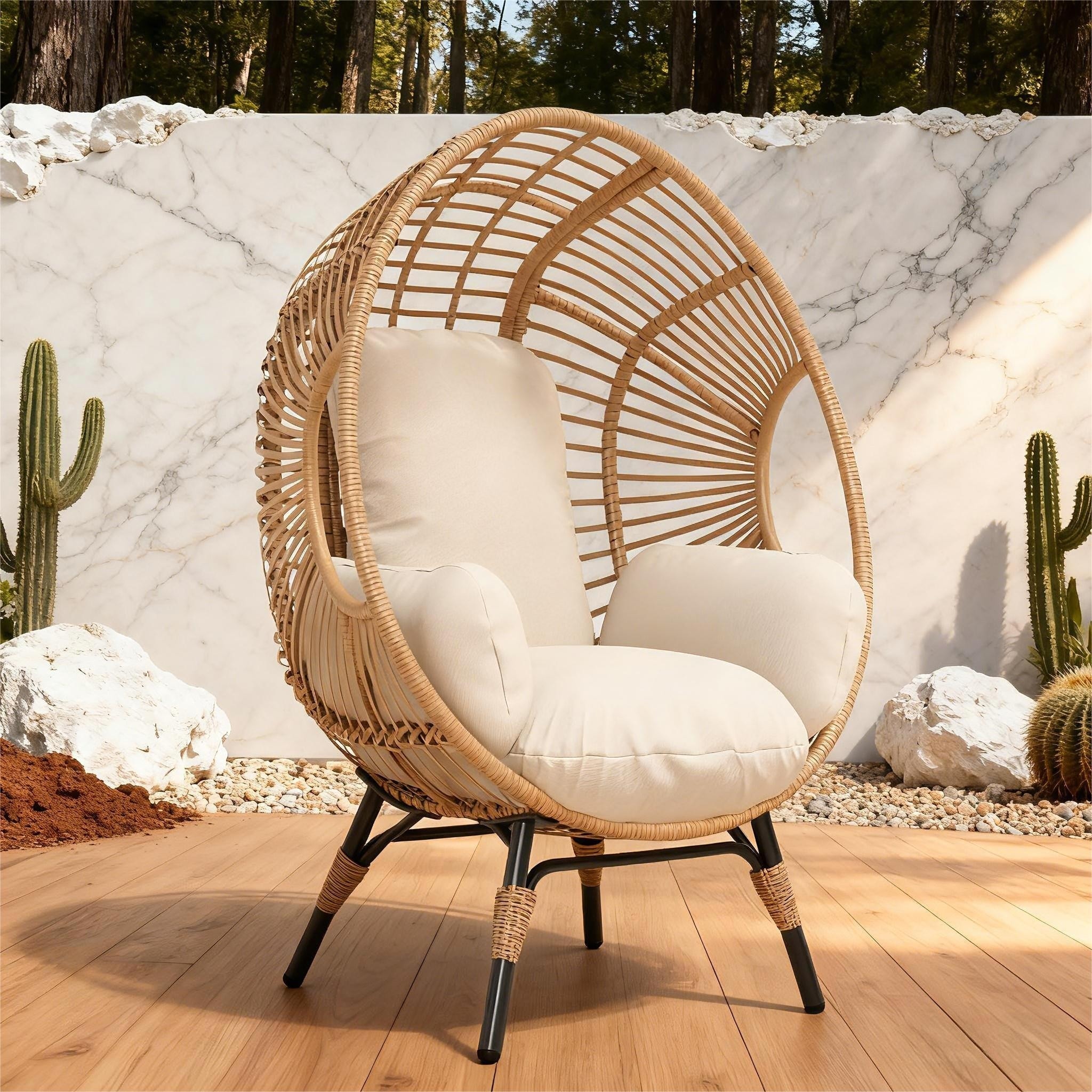 Elegant Arc Back Hanging Egg Chair, 400lb Capacity Patio Swing with 8-Inch Cushion, PE Rattan Outdoor Indoor Chair