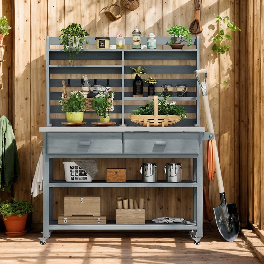Garden Wood Workstation Storage Cabinet Potting Bench Table