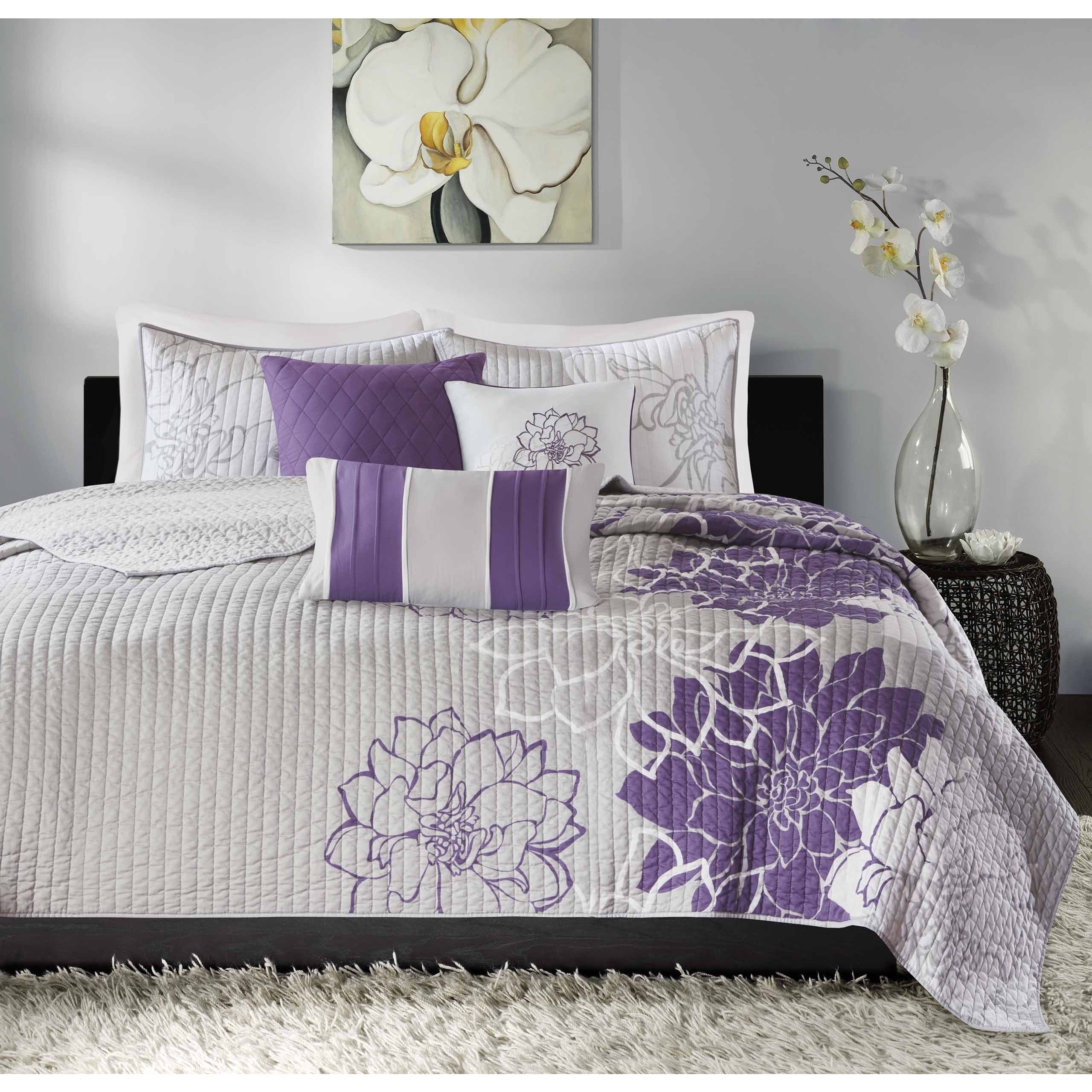 Madison Park Lola 6 Piece Printed Cotton Quilt Set with Throw Pillows