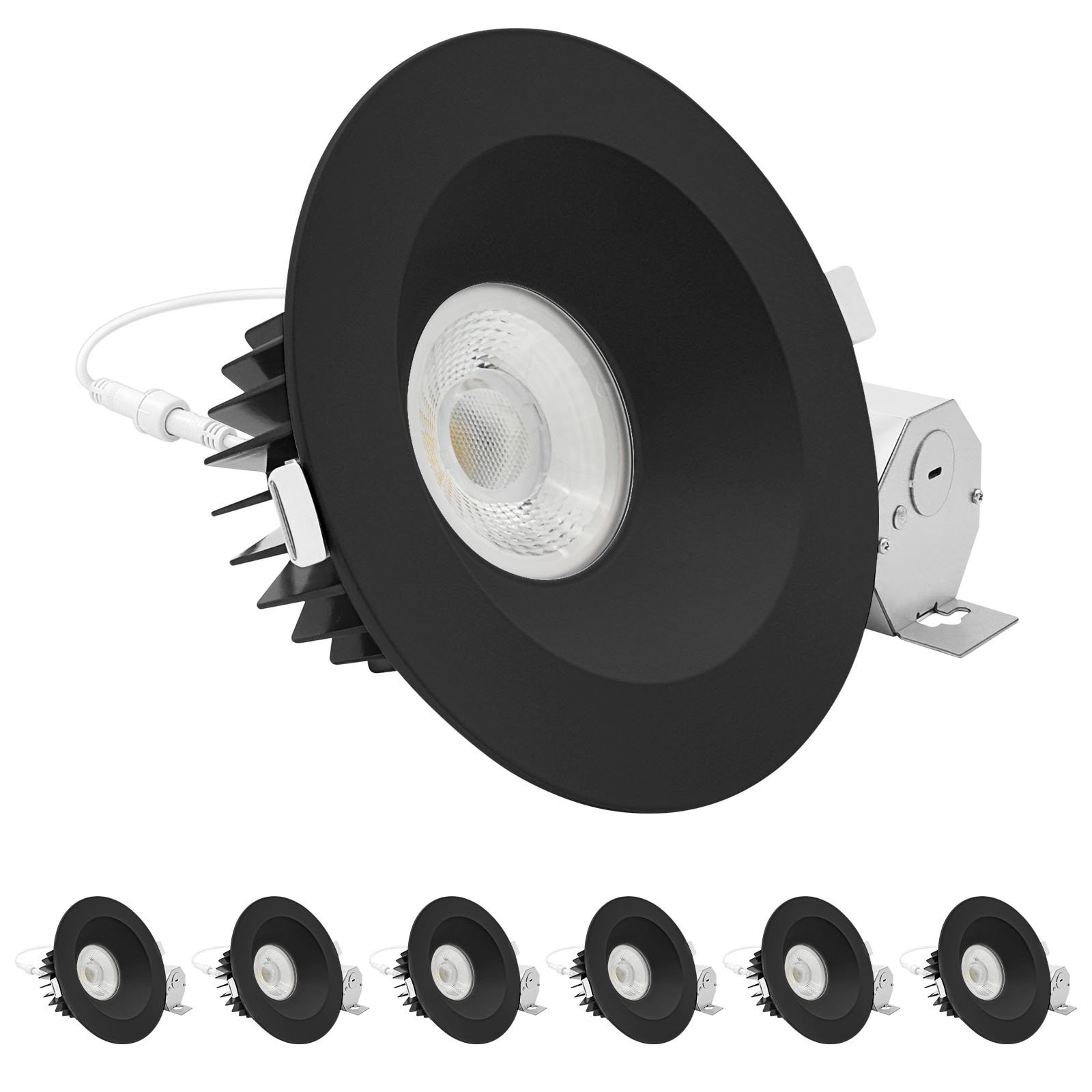 LUXRITE 6 In. LED Regressed Light with Round Black Trim, 22W, 1800LM, 5CCT, 38° Beam, Dimmable, Twist-N-Lock, ETL 6 Pack