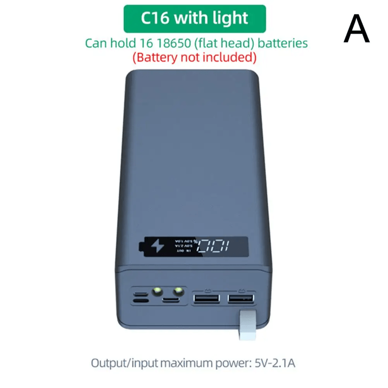 DIY 16 Slot 18650 Battery Holder Power Bank Case For Mobile Charging Projects normal Black