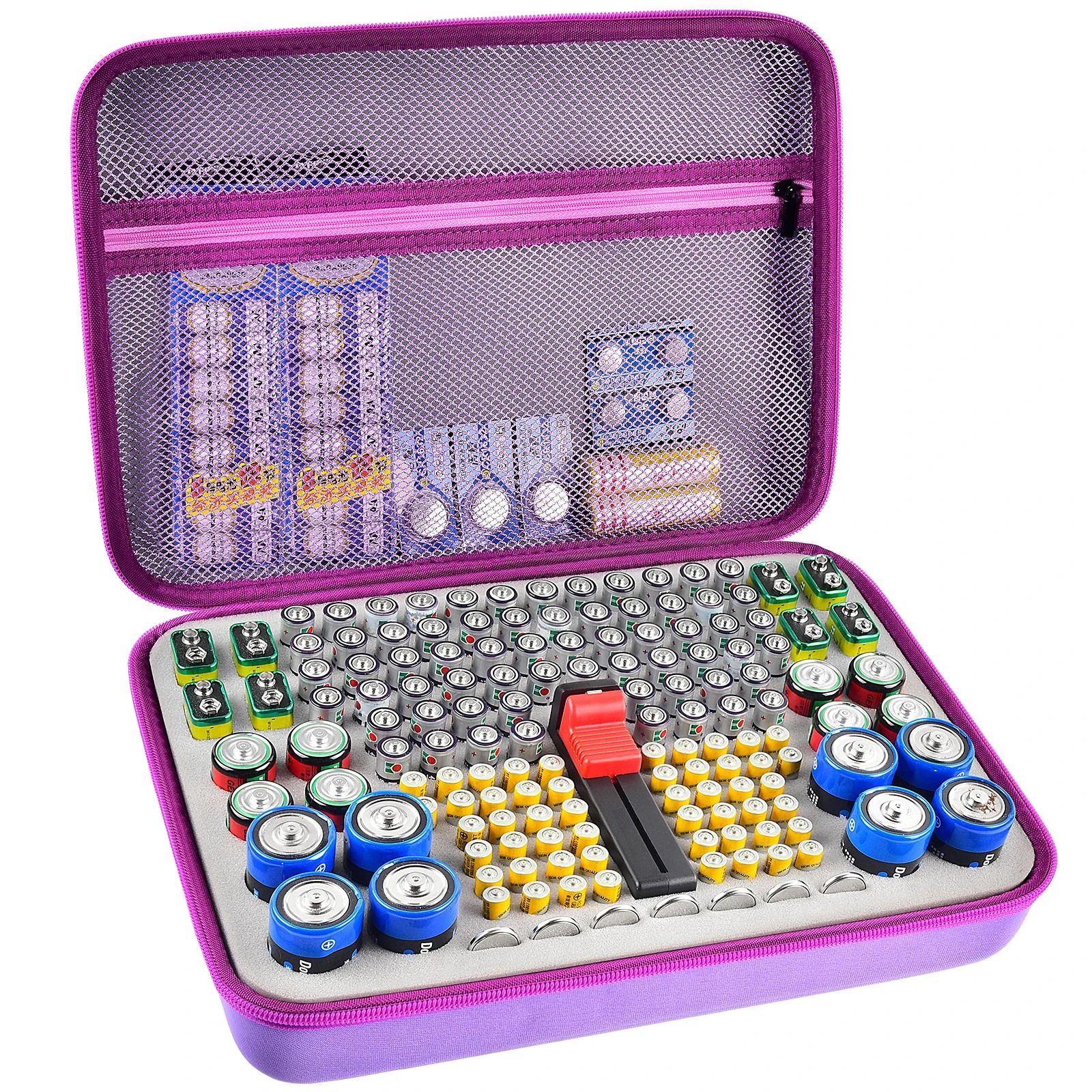 Battery Organizer Storage Box With Tester For AA AAA 9V C D Batteries Home Garage Holder Case lavender