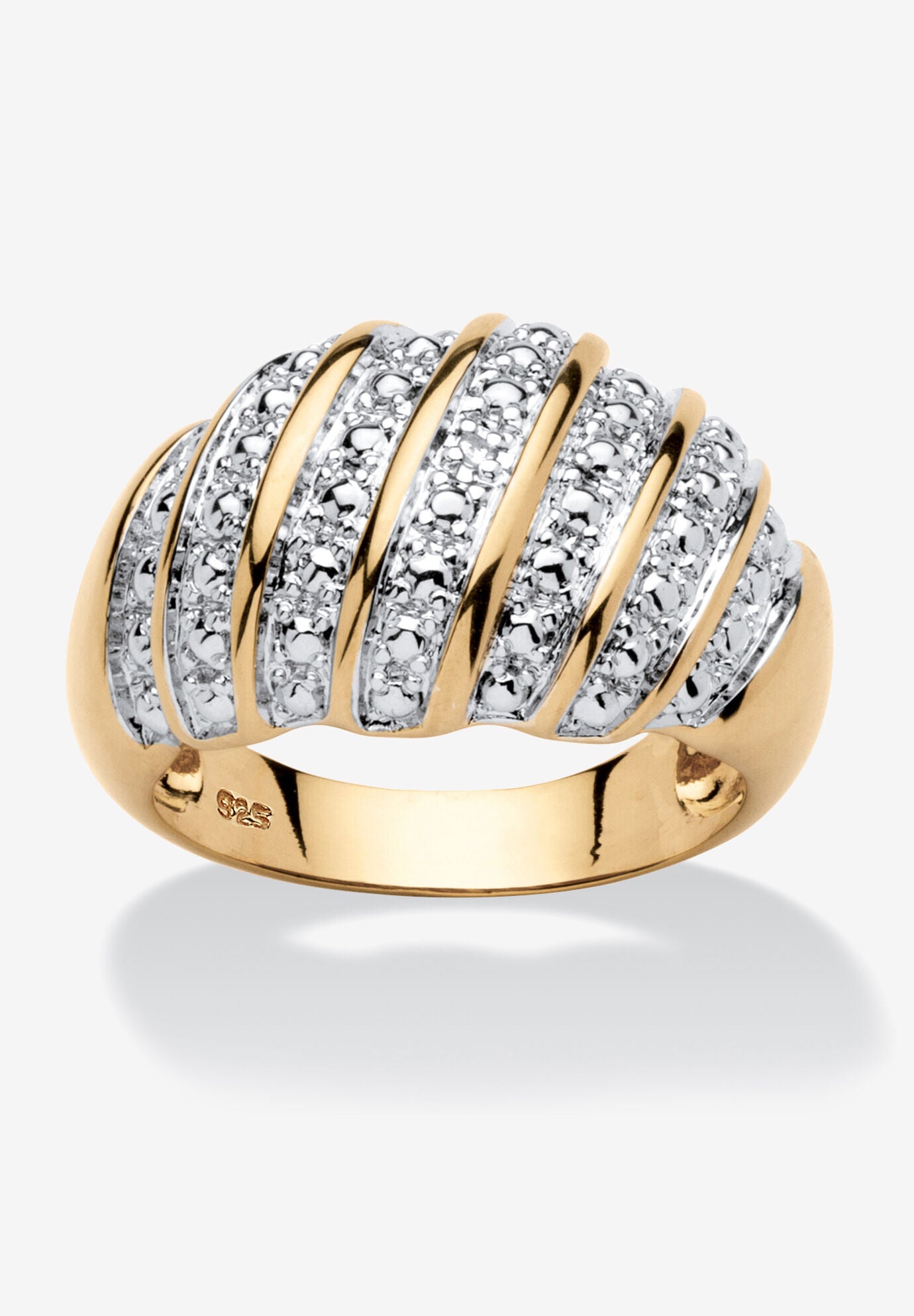 Women's Yellow Gold-Plated Sterling Silver Genuine Diamond Accent Dome Ring by PalmBeach Jewelry in Diamond (Size 9)