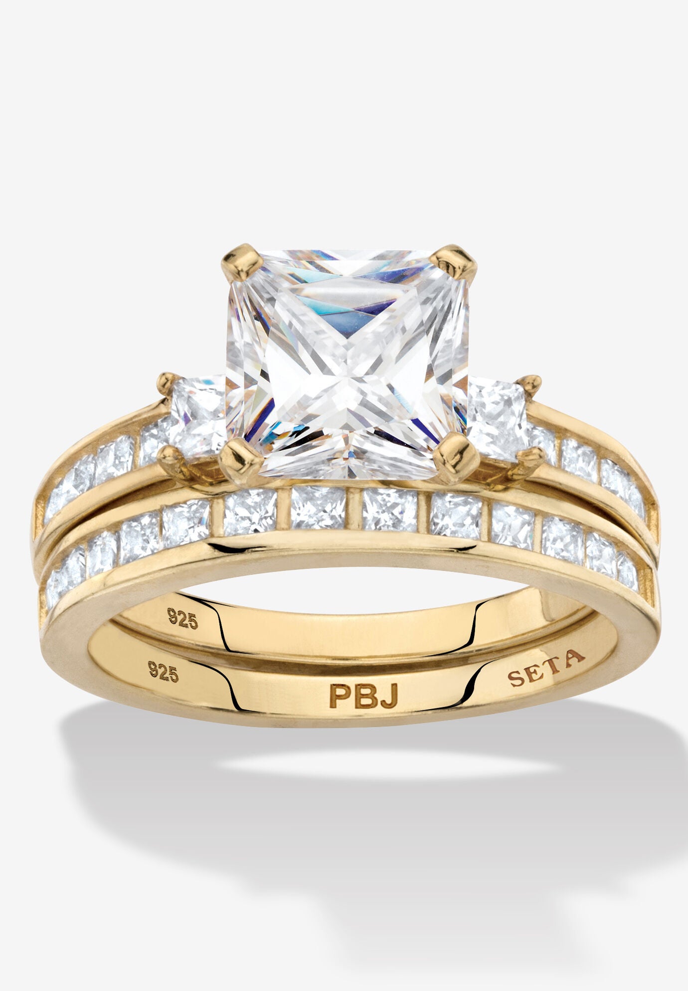 Women's 3.62 Cttw 2-Piece 14K Gold Plated .925 Silver Cubic Zirconia Wedding Ring Set by PalmBeach Jewelry in Gold (Size 9)