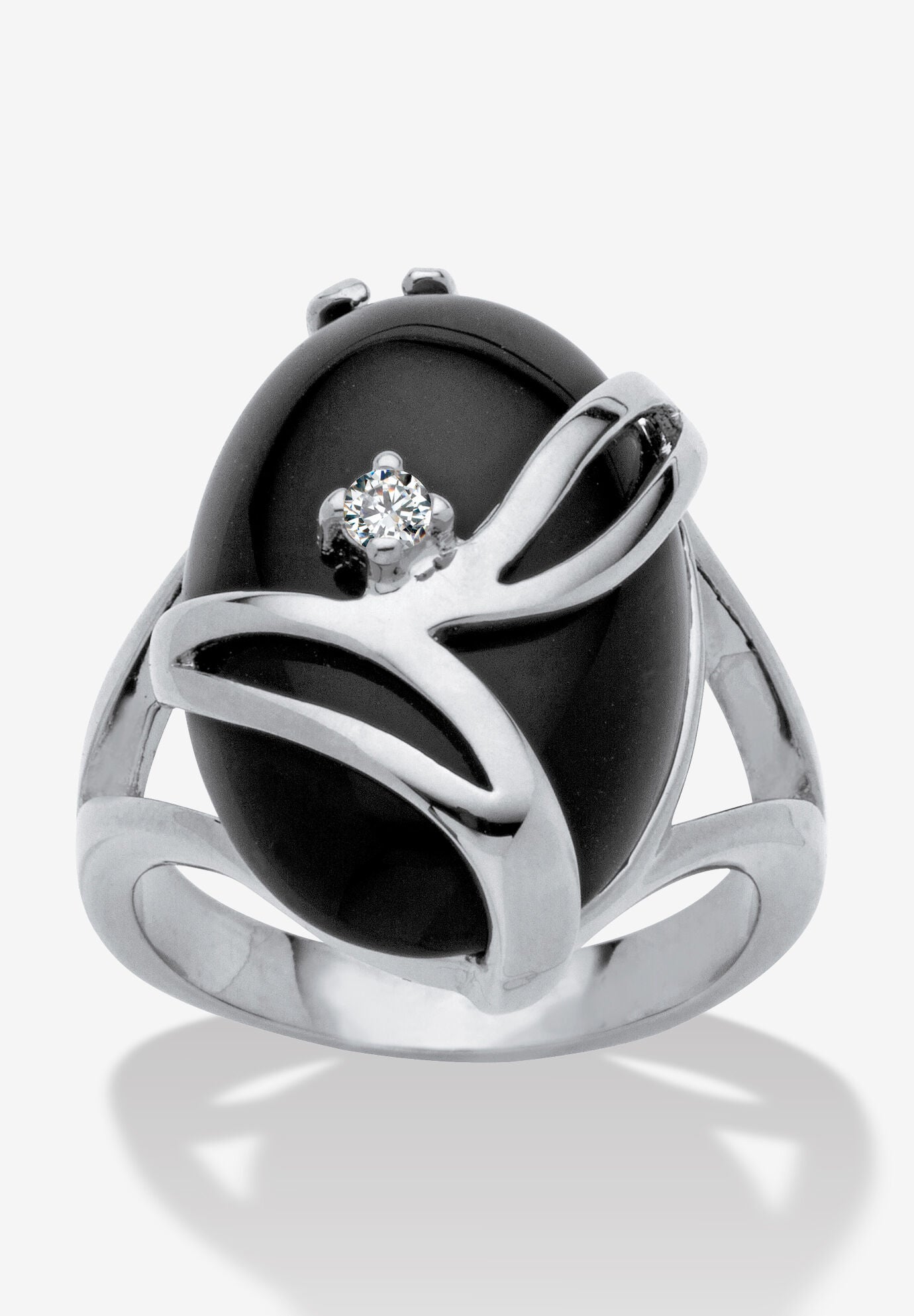 Women's Oval-Shaped Onyx & Crystal Accent Cocktail Ring In Platinum-Plated by PalmBeach Jewelry in Black (Size 8)