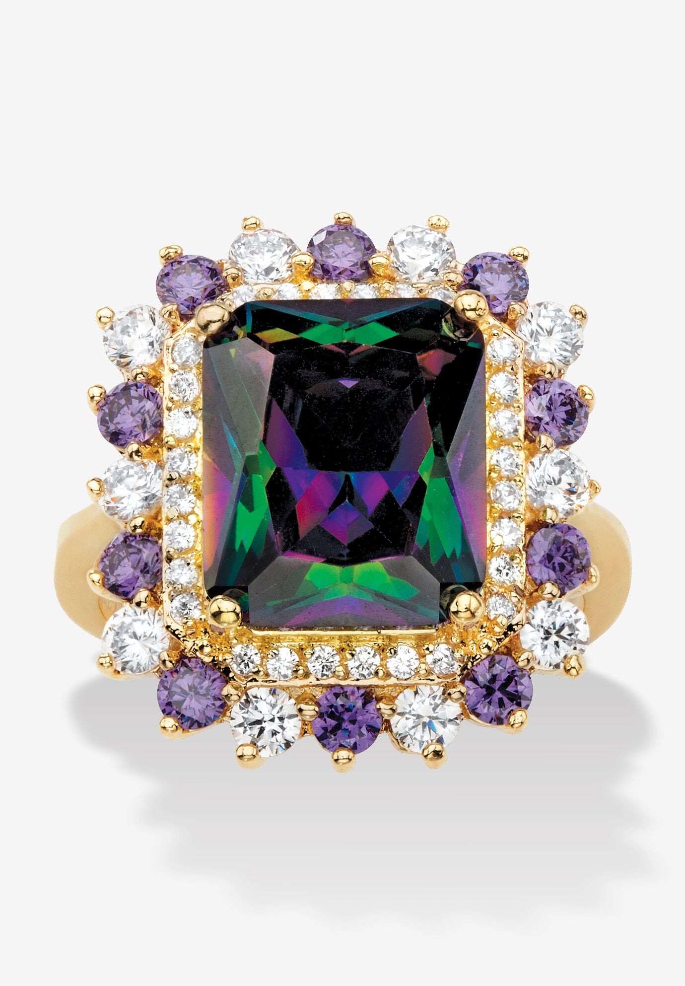 Women's 8.40 Tcw Mystic Cubic Zirconia Gold-Plated Halo Cocktail Ring by J. Renee in Gold (Size 7)