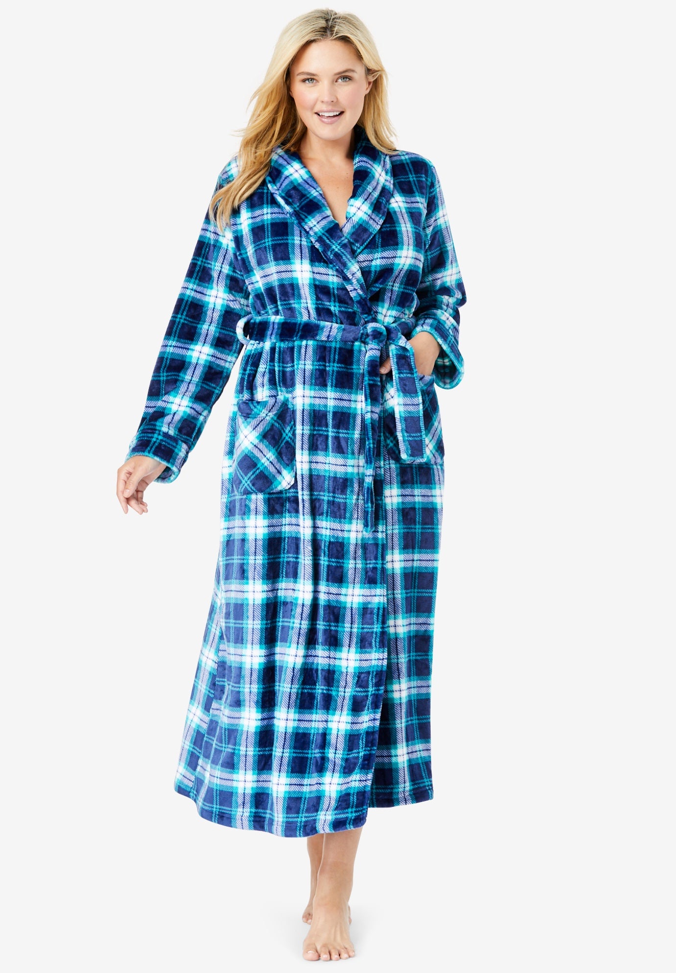 Plus Size Women's Plush Wrap Robe by Dreams & Co. in Waterfall Plaid (Size 18/20)