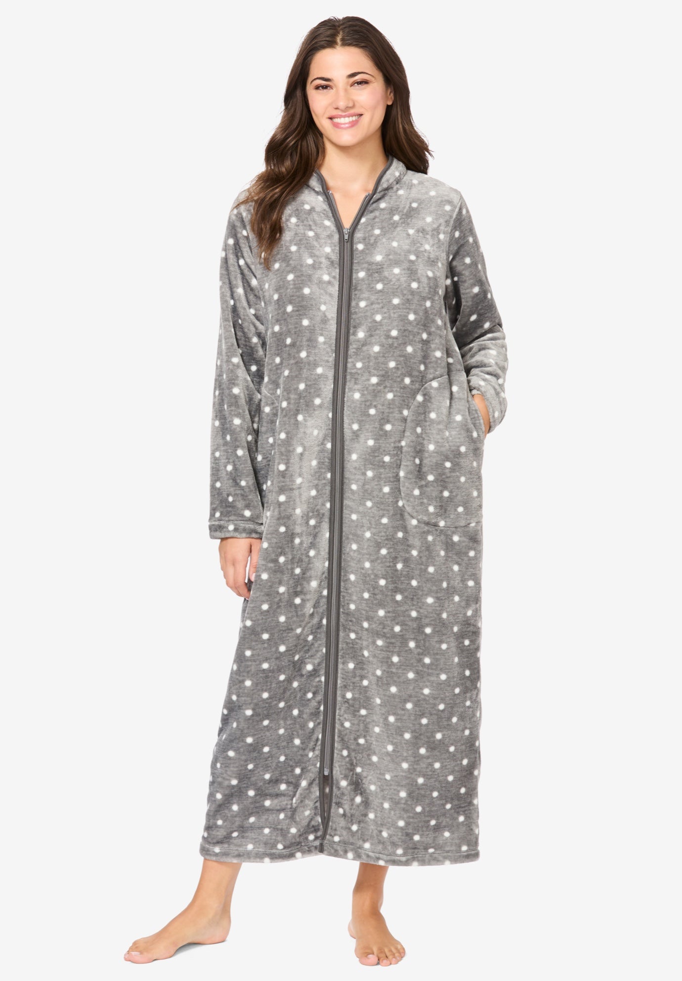 Plus Size Women's Plush Zip-Front Robe by Dreams & Co. in Medium Heather Grey Dot (Size 30/32)