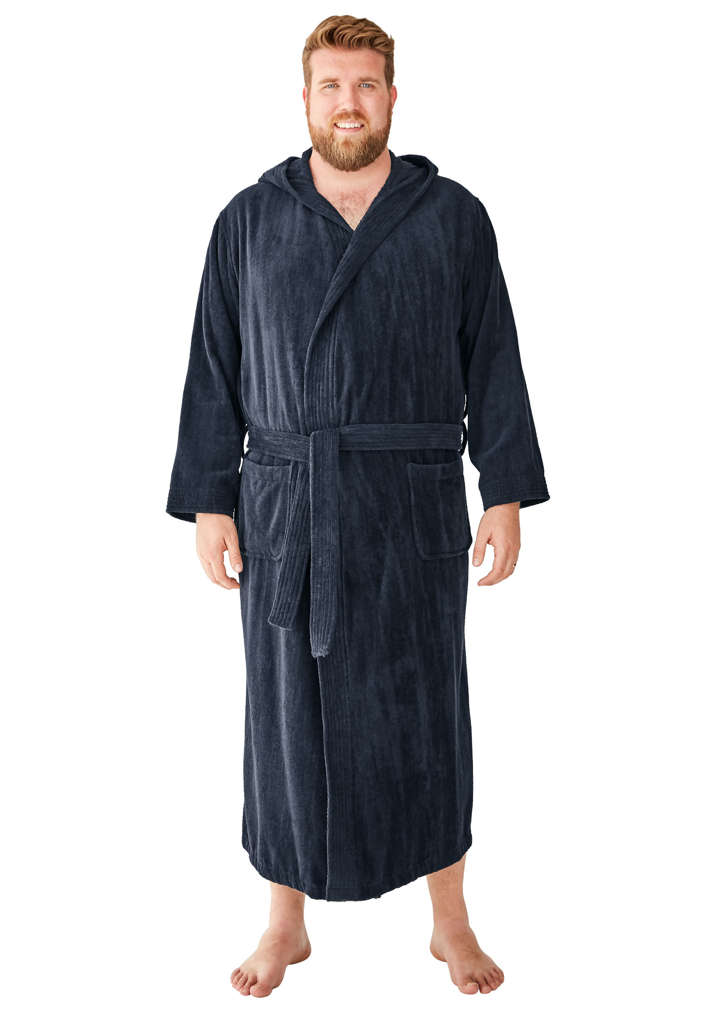 Terry Velour Hooded Maxi Robe by KingSize in Midnight Navy (Size 2XL/3XL)