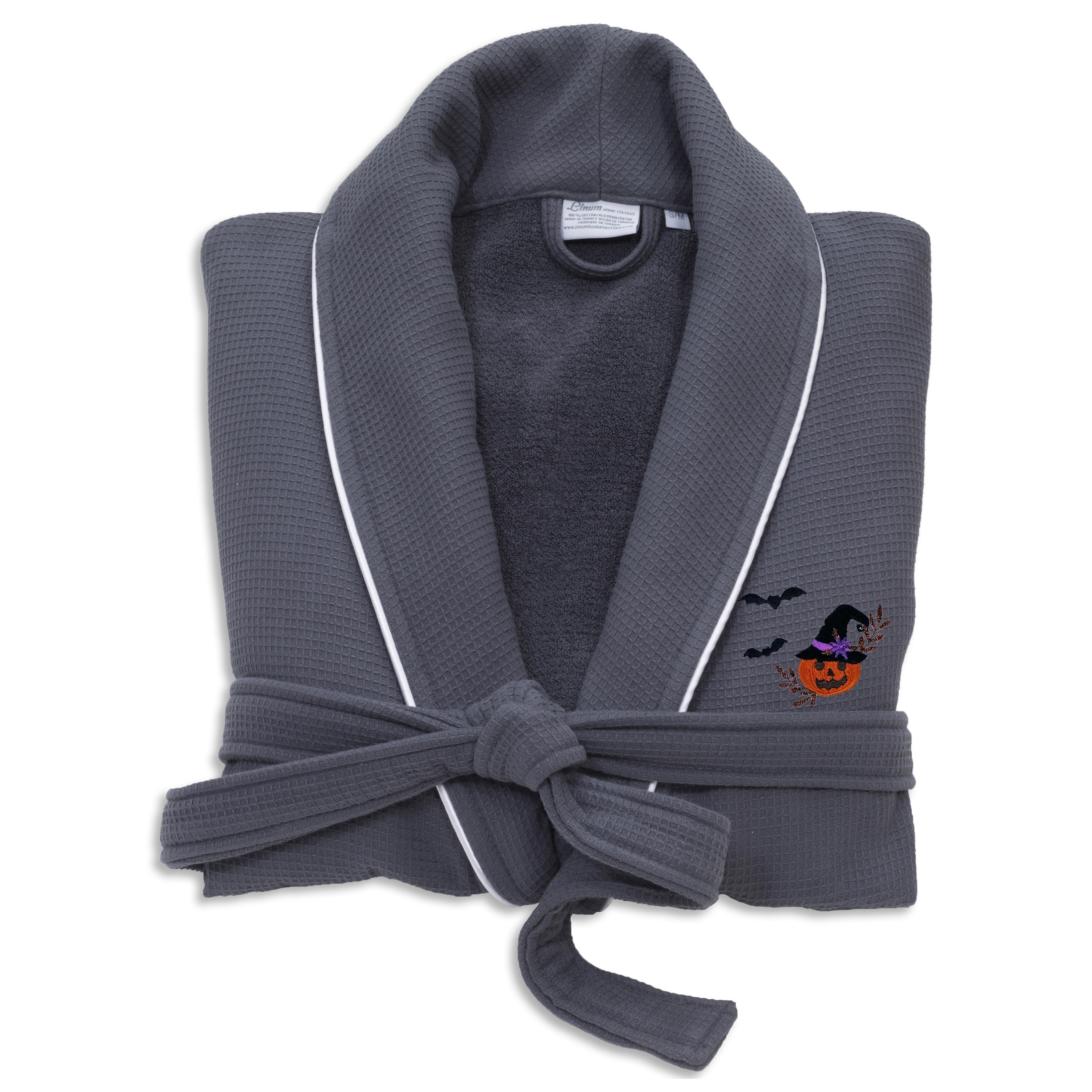 Authentic Hotel and Spa 100% Turkish Cotton Unisex Waffle Terry Bath Robe with Satin Piped Trim and Pumpkin Head Embroidery