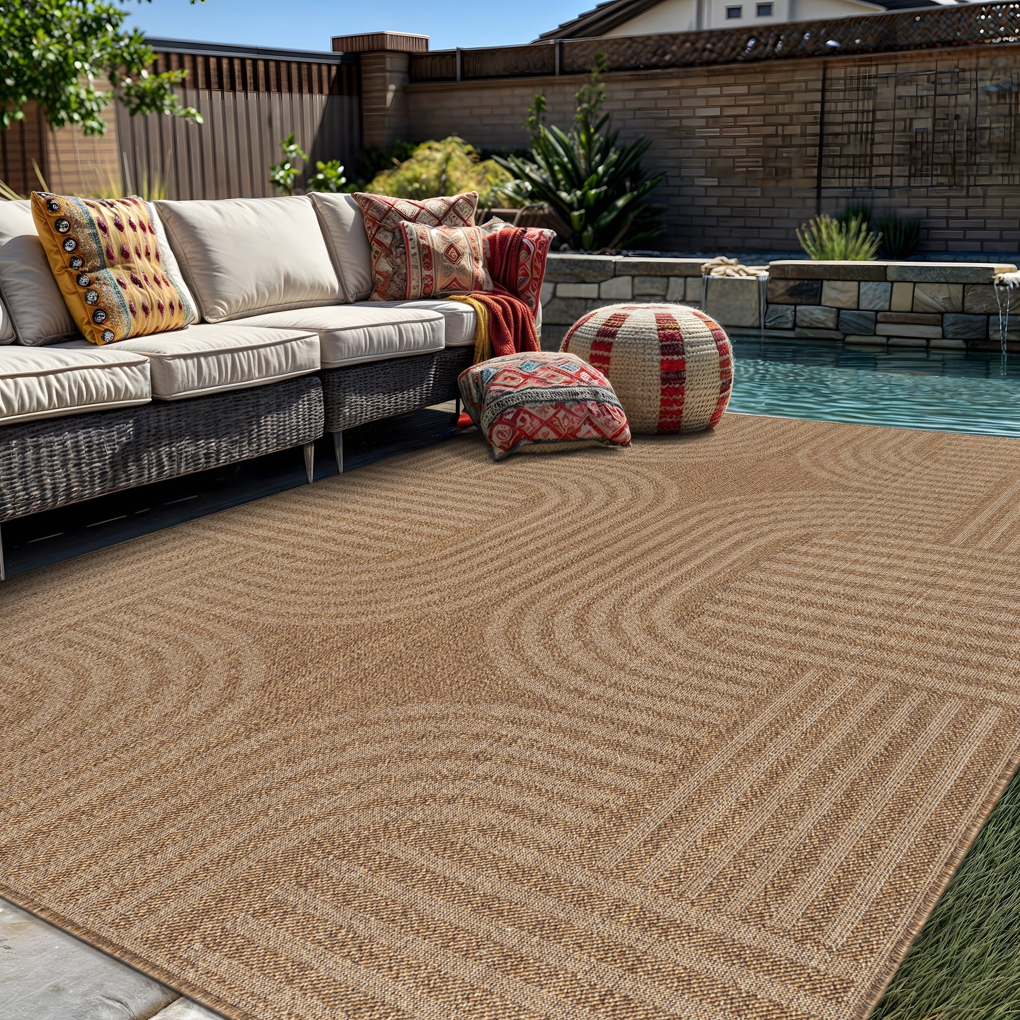 World Rug Gallery Geometric Indoor/Outdoor Flat Woven Area Rug - Natural Jute-Style, Easy-Care Patio Rug for Balcony Patio Deck