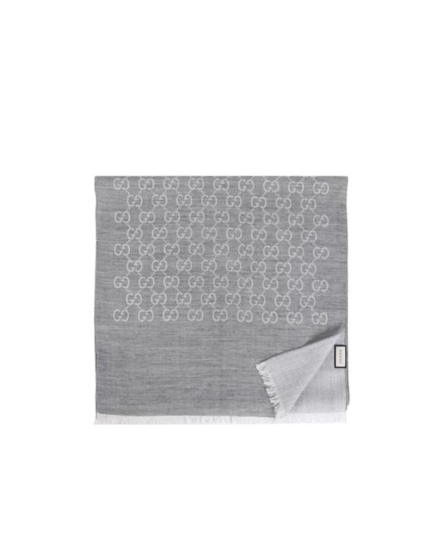 Double-Sided Fringed Scarf - Gray - Gucci Scarves