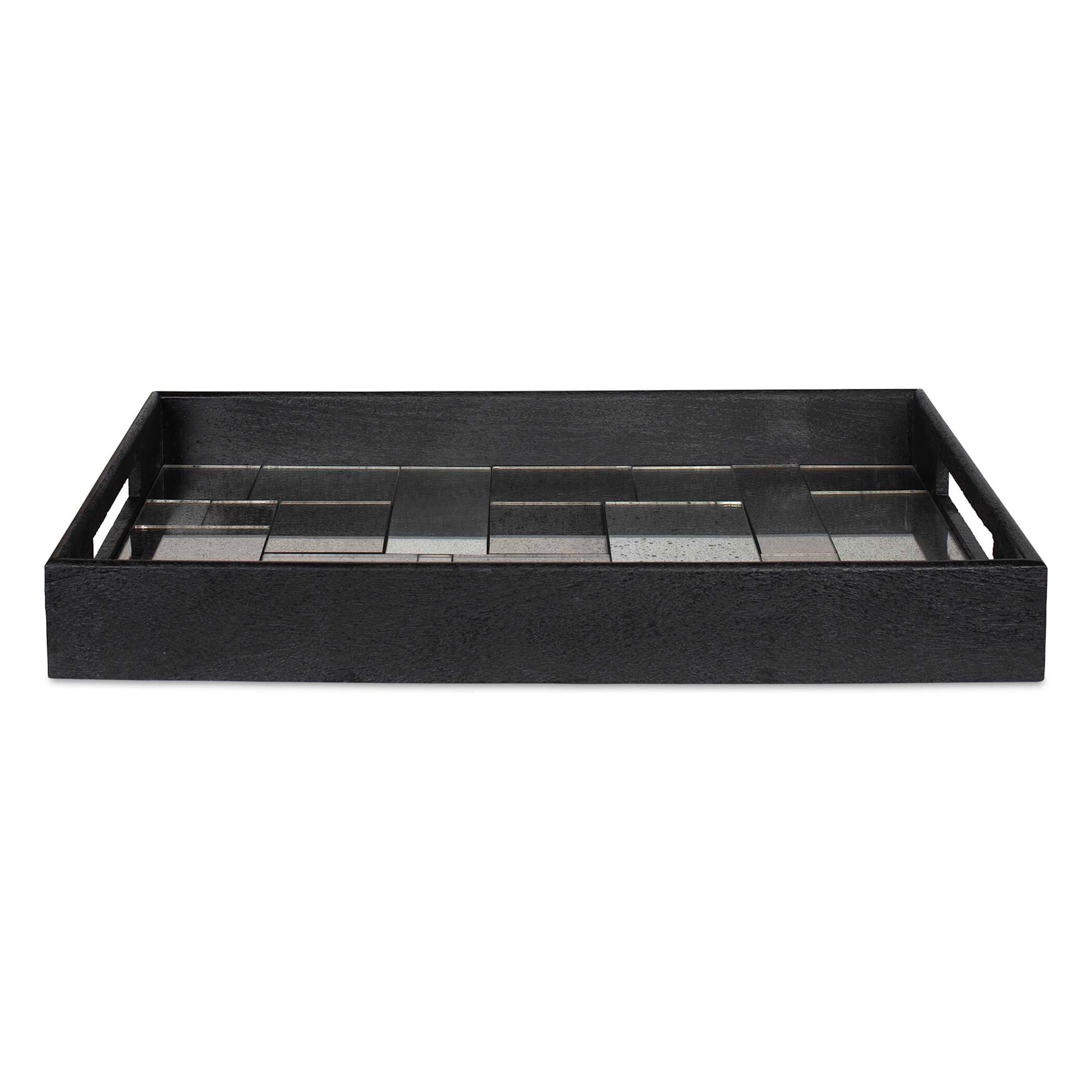 Uttermost 18261 Modern 24" Wide Glass, Mango Decorative Tray - Black / Antique Mirrored