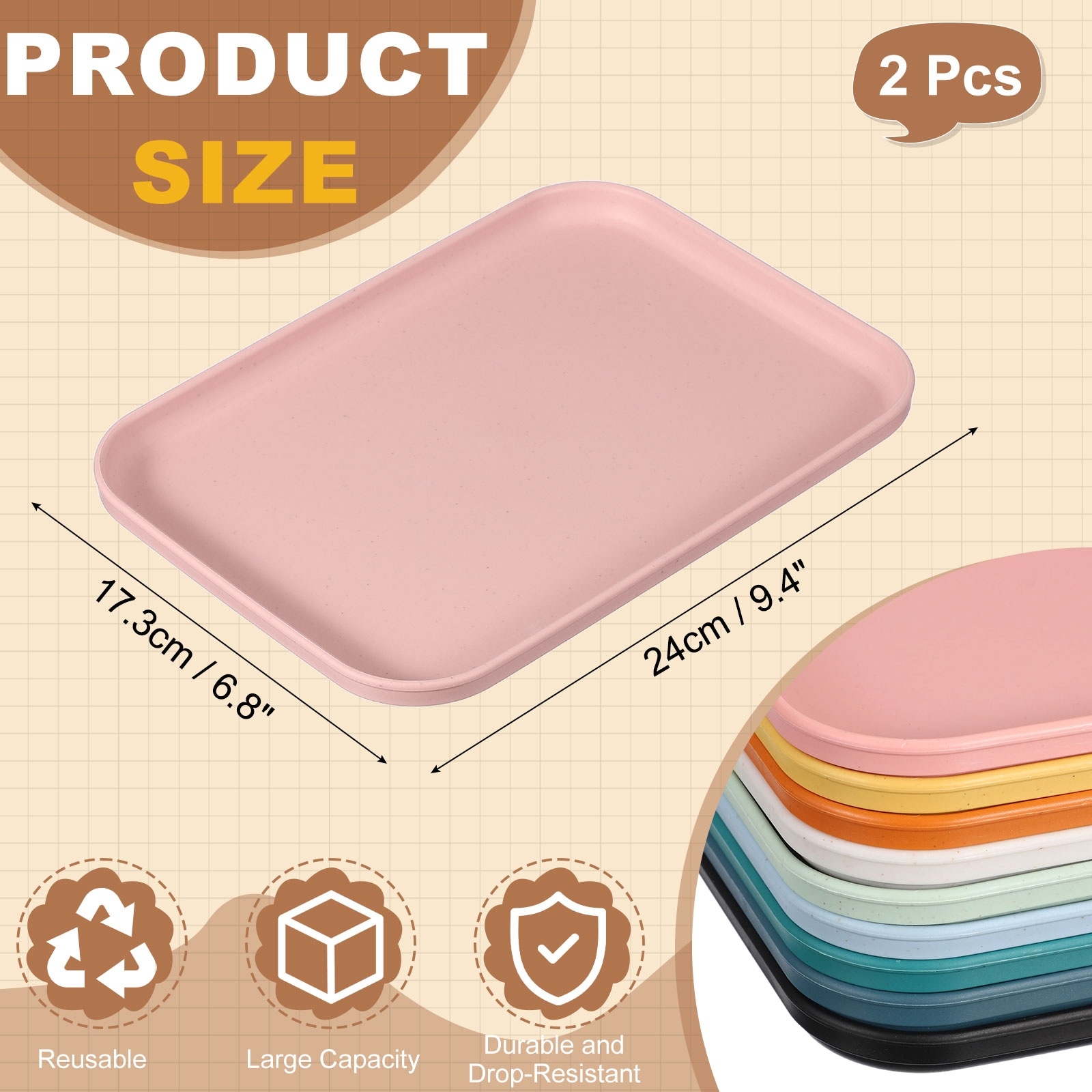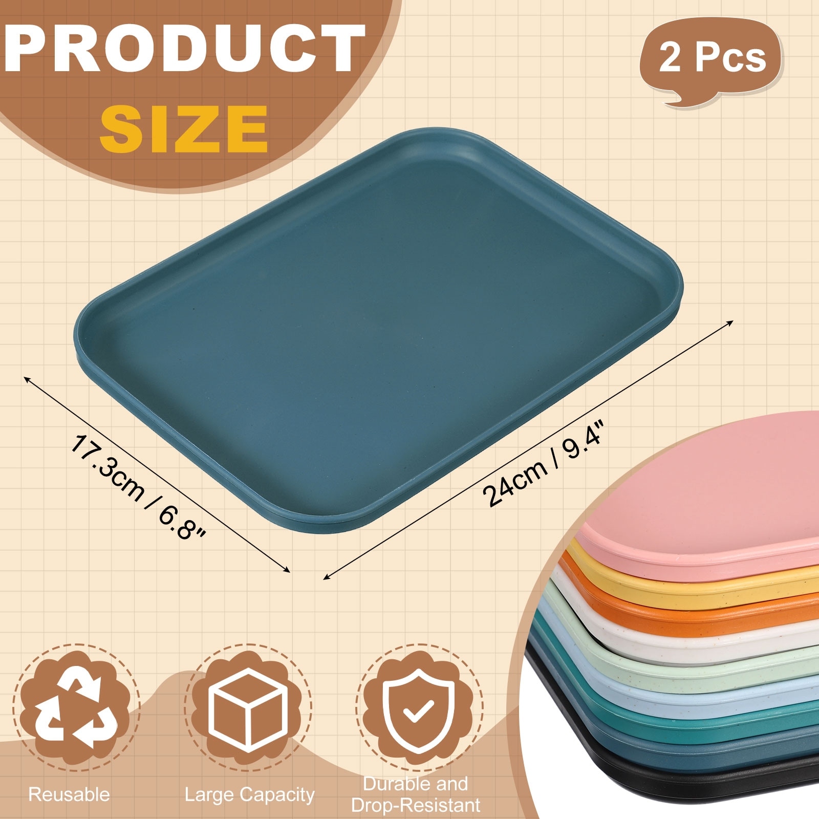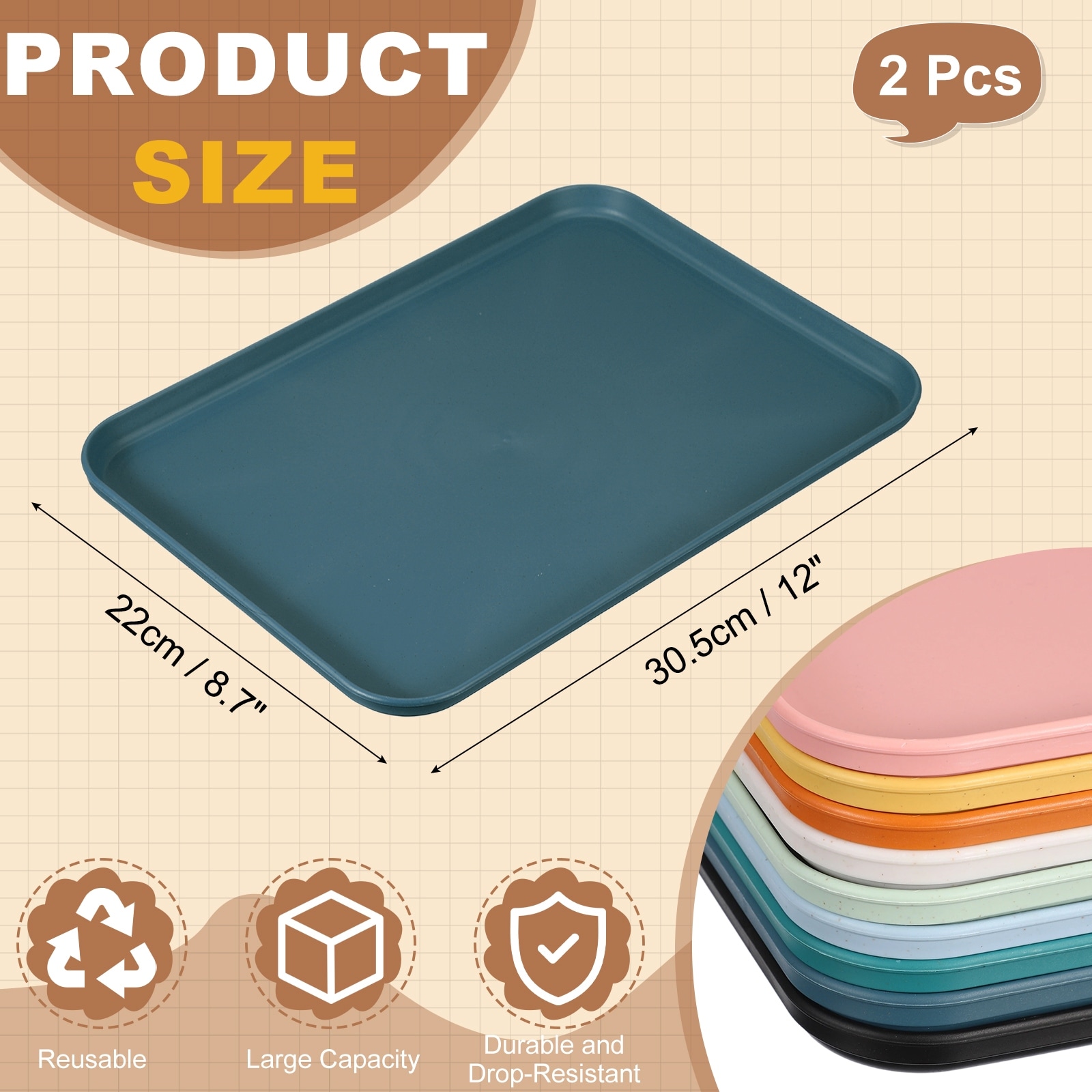 Fast Food Serving Trays, Rectangular Reusable Restaurant Serving Trays for Kitchen Restaurant Coffee Fruit Burger Lunch Dessert