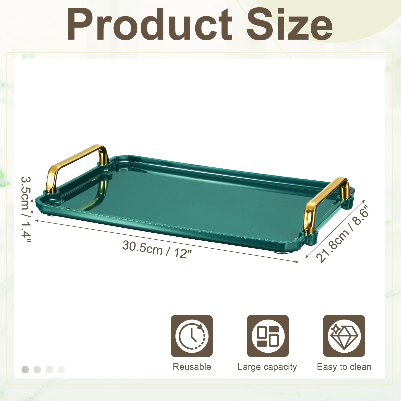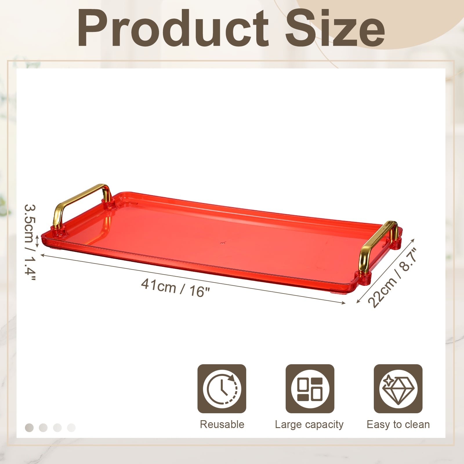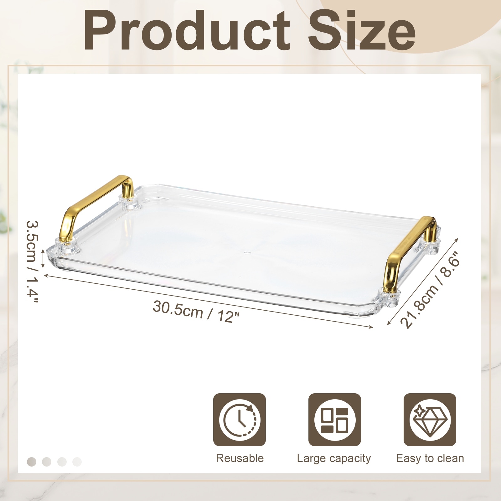 Plastic Serving Tray with Golden Handle, Modern Rectangular Decorative Tray Acrylic Reusable Tea Platter