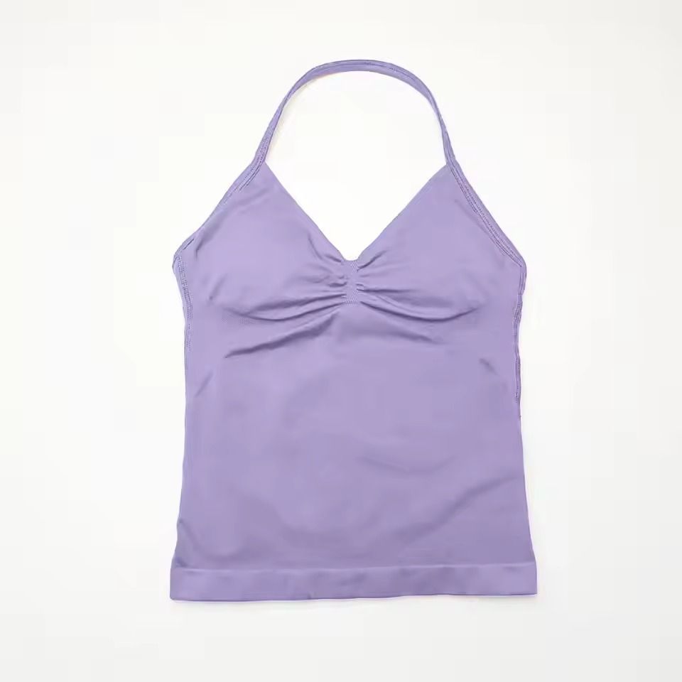 Longline Strappy Sports Yoga Tank Top Open Back Fitness Halter Bra light Purple