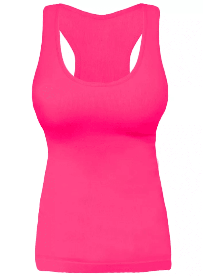 Seamless Ribbed Racerback Camisole Tank Compression Fit Yoga & Gym Tap pink