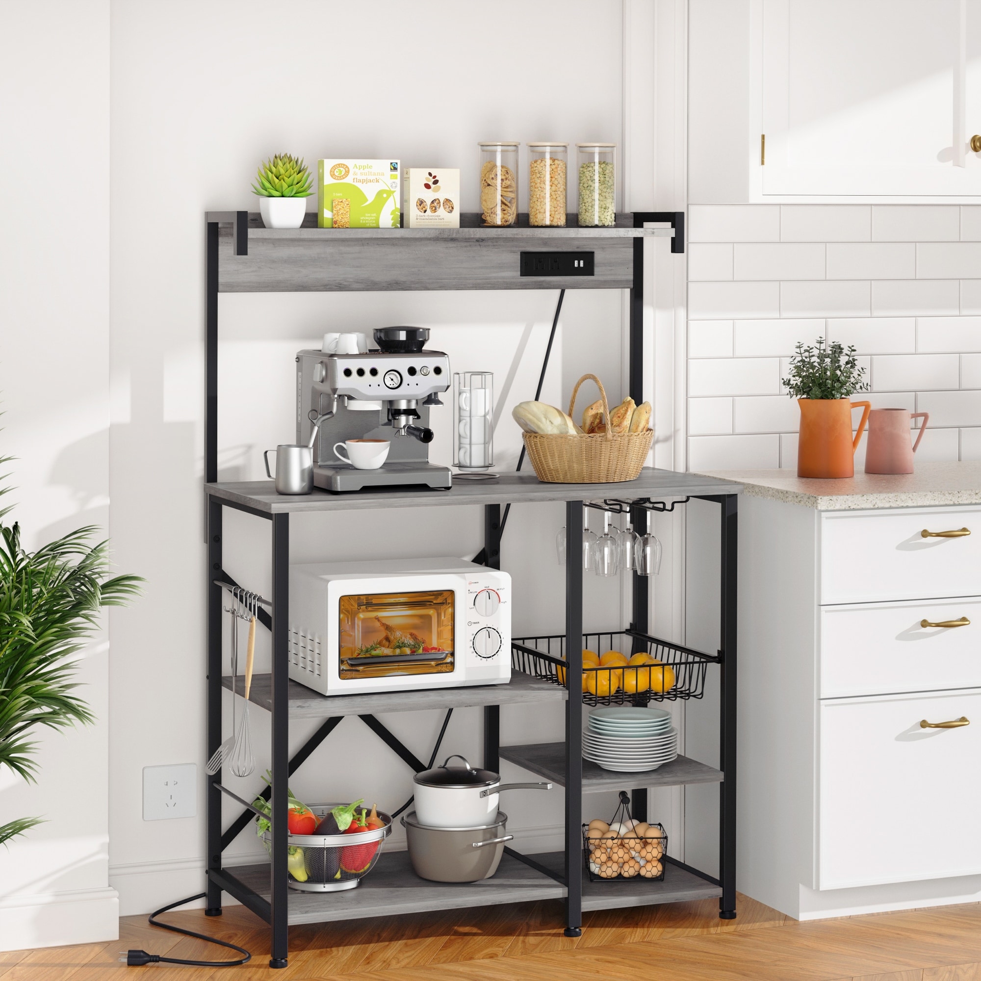 Kitchen Baker's Rack with Power Outlet & USB Ports, Storage Shelf