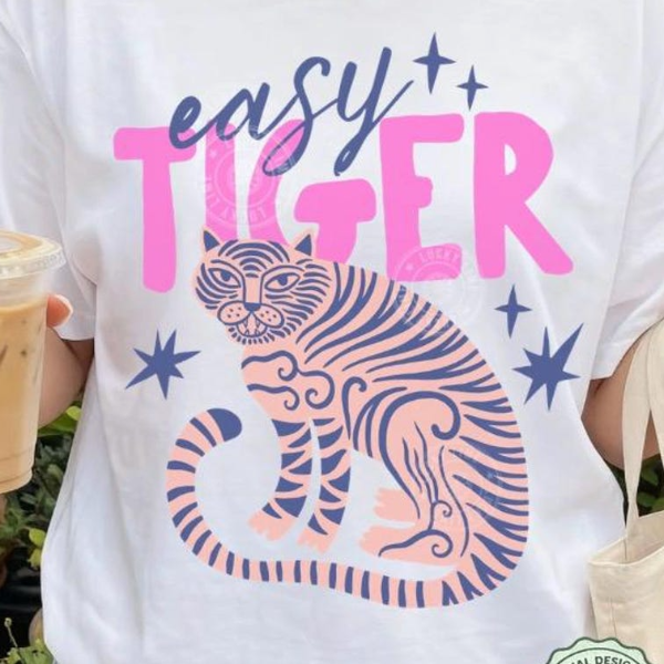 Easy Tiger T Shirt Retro Boho Tiger Graphic Tee beige 2xl sweatshirt