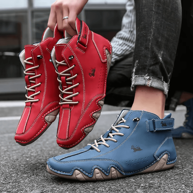 Mens Casual Leather Outdoor Walking Loafers Comfortable Lightweight Sneakers Shoes red 43 (11 Us)