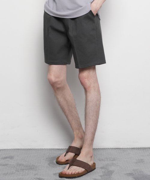 theabon Men's Basic Cotton Span Banding Cotton Shorts Charcoal