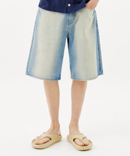 trillion Front Wash Bermuda Denim Shorts_LIGHT BLUE