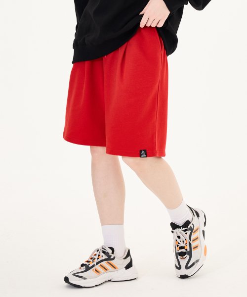 mozmoz Cotton One-Tuck Wide Training Shorts Red