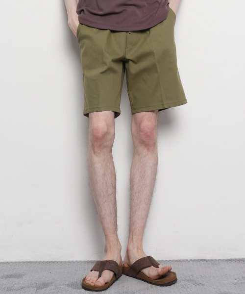 theabon Men's Basic Cotton Span Banding Cotton Shorts Khaki