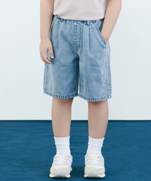 musinsastandardkids Linen-like one-tuck wide-banded denim shorts