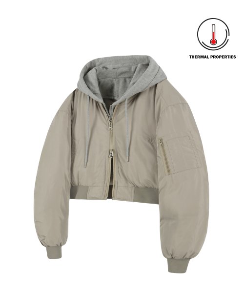 vivabrown 85-VIVA018 Hood layered crop short padding beige