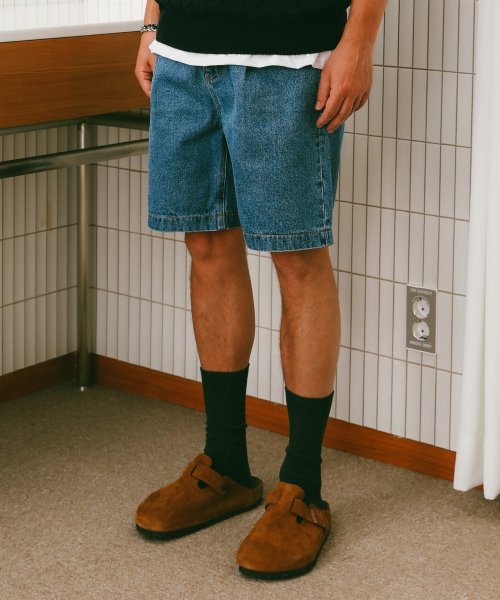 esn Essential One-Tuck Denim Shorts Deep Blue