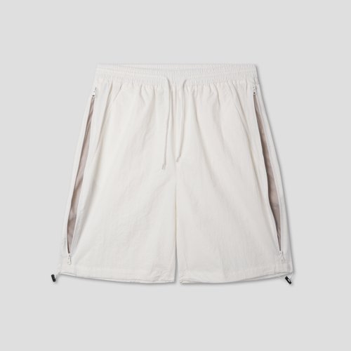 apostrophecomma Side Mesh Zip-Up Nylon Banding Shorts_White
