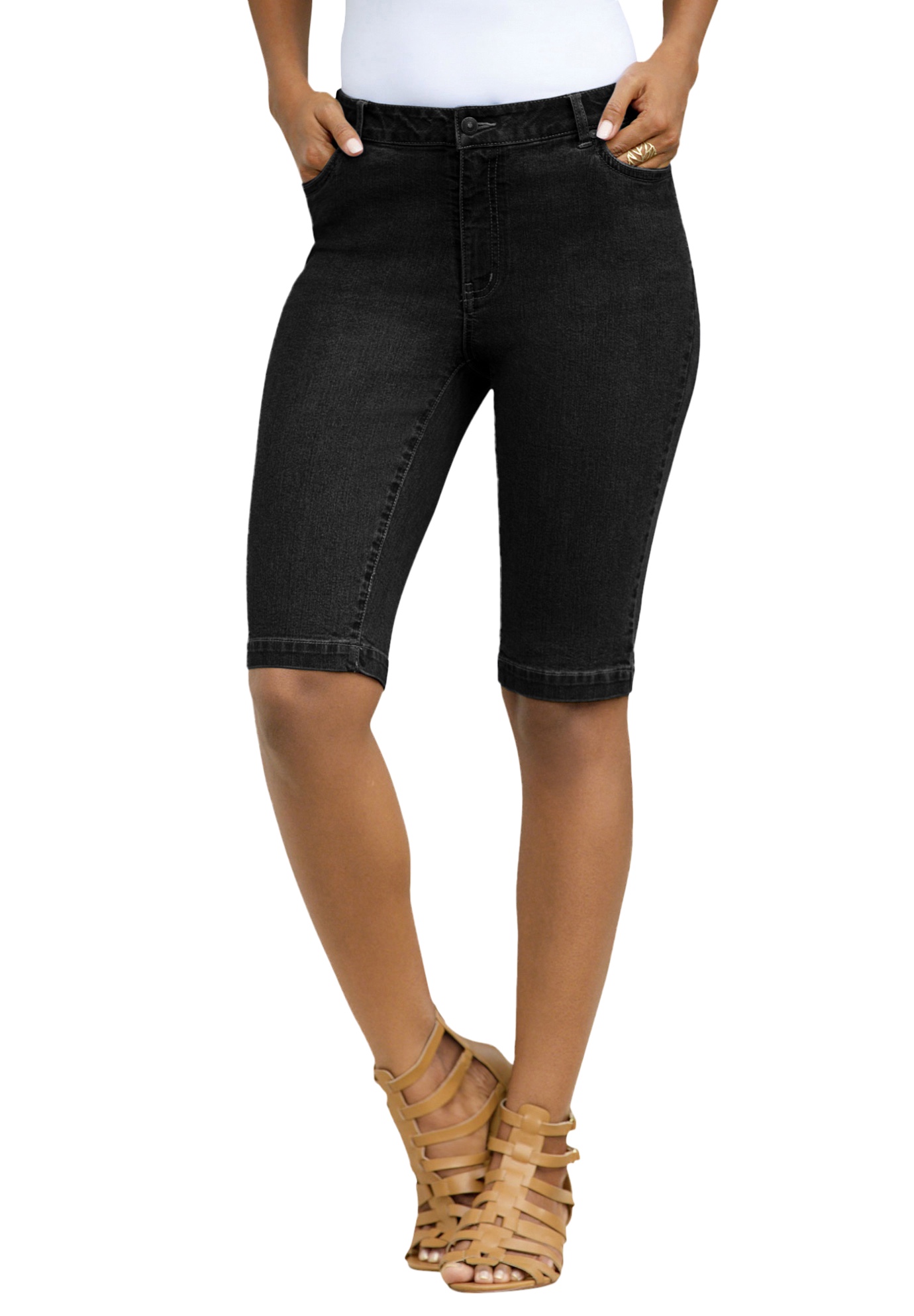 Plus Size Women's Plus Size Comfort Stretch Bermuda Jean Short by Denim 24/7 by Roamans in Black Denim (Size 28 W)