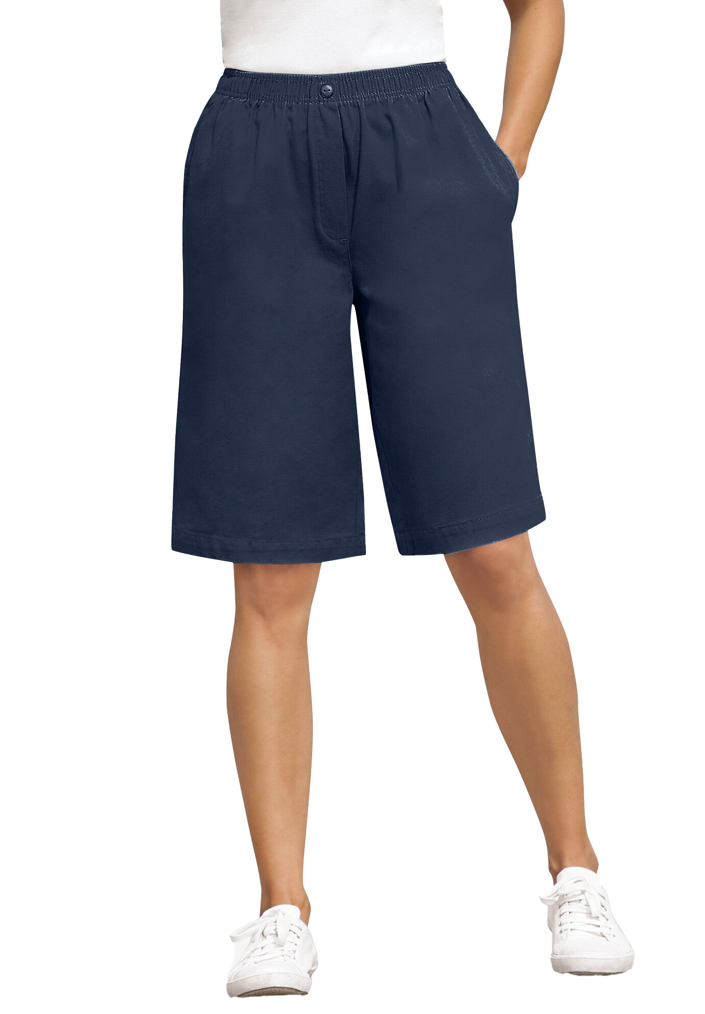 Plus Size Women's 7-Day Elastic-Waist Pull-On Cotton Denim Shorts by Woman Within in Navy (Size 36 W)