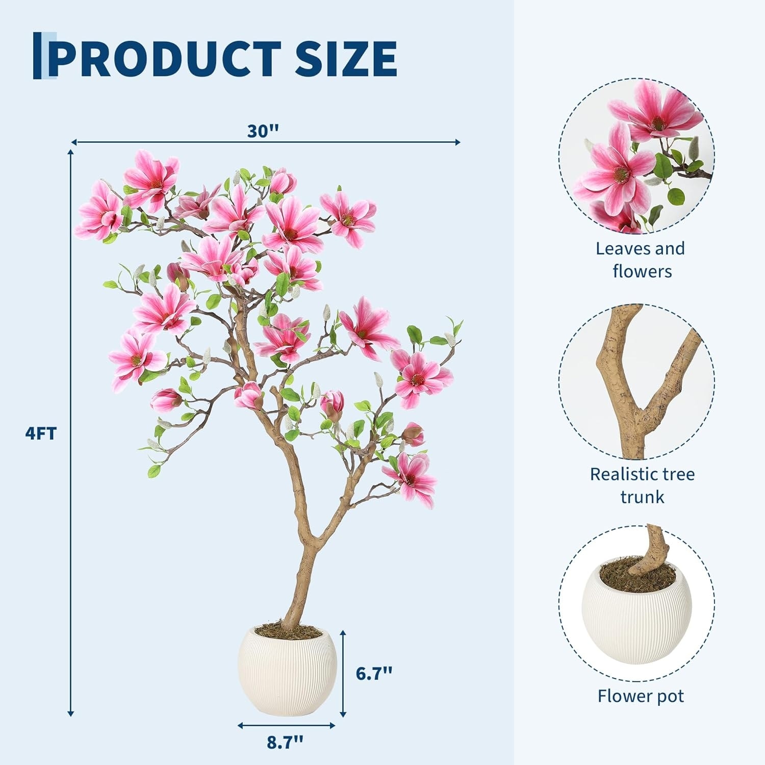 4 ft Artificial Pink Magnolia Tree in Pot - Pink 4ft