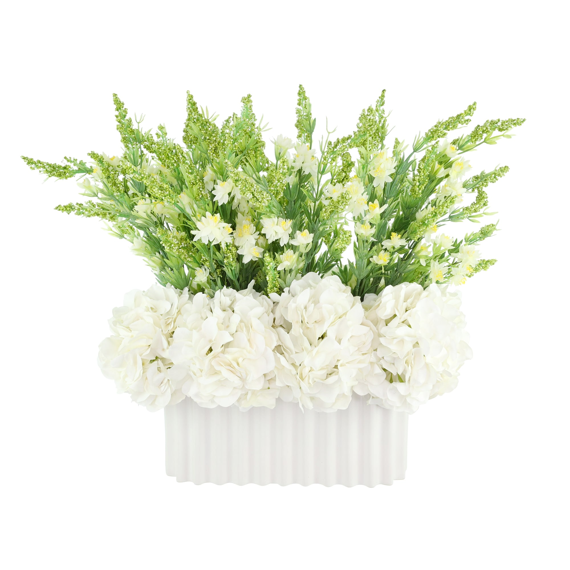 Hydrangeas and Wild Heather in Ceramic Vase - 21