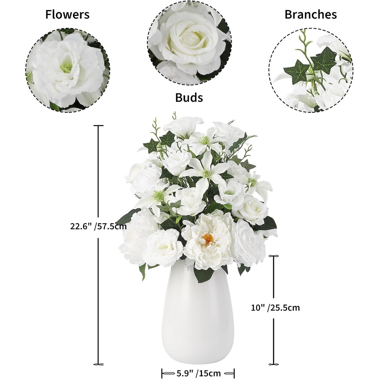 Artificial White Roses, Lifelike Faux Flowers for Home, Office & Event Decoration - Rose,white