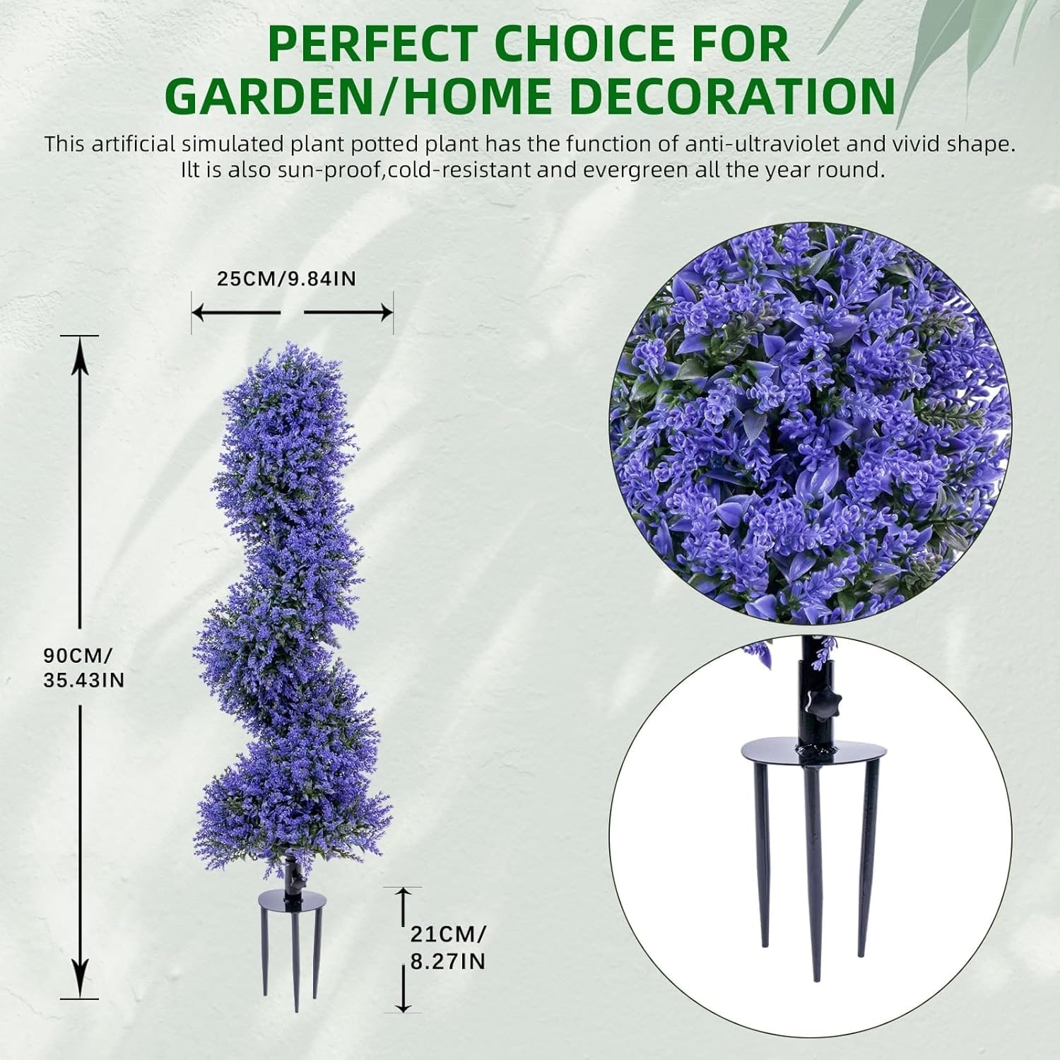 Set of 2 Artificial Lavender Spiral Topiary Trees - Blue