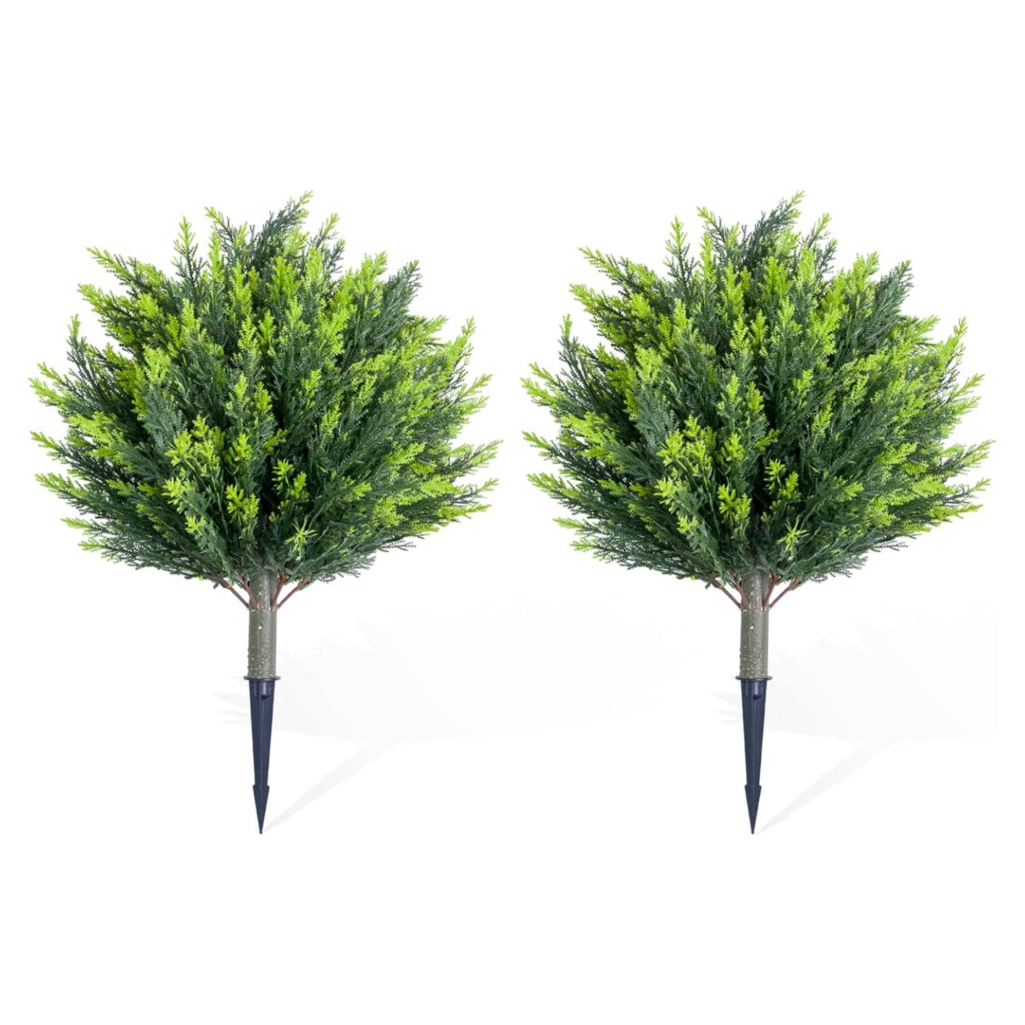 25.6 Inch Artificial Cedar Topiary Ball Tree with Spike for Home Decor
